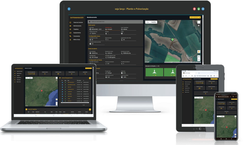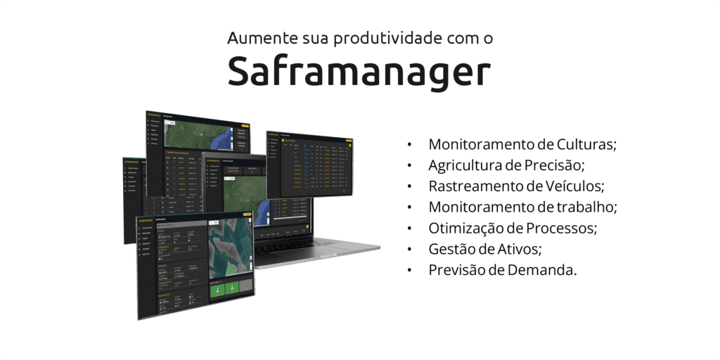 O SAFRAMANAGER É UMA FERRAMENTA DE GERENCIAMENTO E ACOMPANHAMENTO ON-LINE INTEGRADO COM DISPOSITIVOS SAFRAMAX, PERMITINDO QUE VOCÊ OBTENHA RELATÓRIOS EXCLUSIVOS E ACESSE DADOS ESSENCIAIS PARA UM AMPLO CONTROLE E MONITORAMENTO DE TRABALHOS REALIZADOS NO CAMPO. COM A POSSIBILIDADE DE ACOMPANHAR TODOS OS PROCESSOS EM TEMPO REAL ATRAVÉS DA TELEMETRIA VIA 3G/4G, MANTENDO VOCÊ ATUALIZADO INDEPENDENTE DE ONDE ESTIVER!