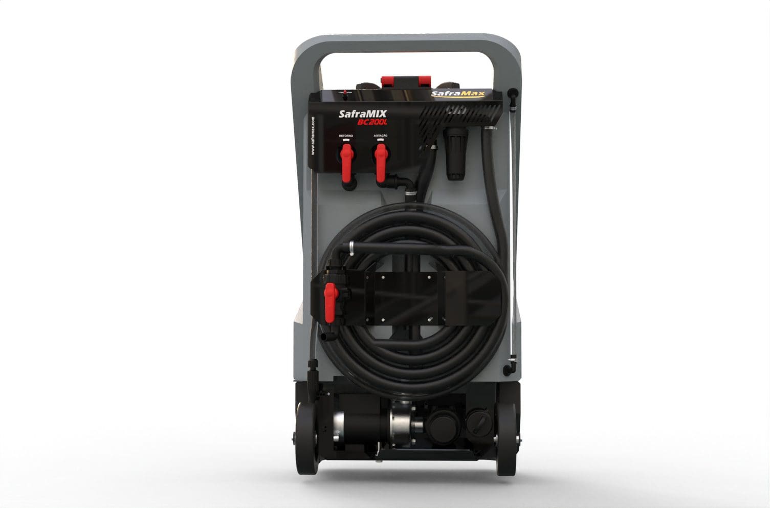 Saframix BC200ladmin2026-01-22T09:19:52-03:00 Misturador de caldaSaframix BC200L DESTAQUES Abastecimento rápido: vazão de 45 a 60 L/min.Filtros de entrada e saída de alta vazão.Lava frascos articulado.Fácil transporte e mobilidade com rodas integradas.Entrada para reabastecimento rápido.Possui mangueira de esguicho para limpeza.EspecificaçõesMotobomba com voluta e rotor em inoxTensão: 220V~ / Frequência: 60 HzPotência: 0,37 KW / Peso: 62 kgCapacidade do tanque: 200 LitrosDimensões: 65 cm (C) x 66 cm (L) x 123 cm (A) Sistema de Proteção exclusivo: Protege a bomba de trabalhar a seco e o gerador contra curto-circuito ou travamento do motor. Imagens VídeosConheça mais sobre o SafraMix BC200l